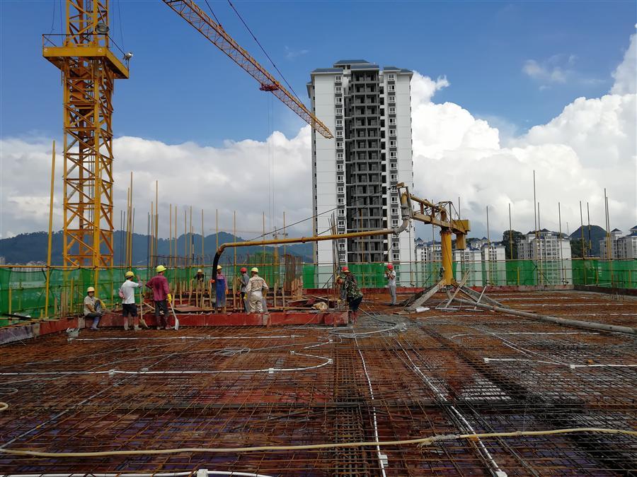 該工程于去年12月全面開工,經(jīng)過參人員9個月的共同努力,目前主樓主體結(jié)構(gòu)實現(xiàn)封頂,項目將全面進入砌體施工階段。