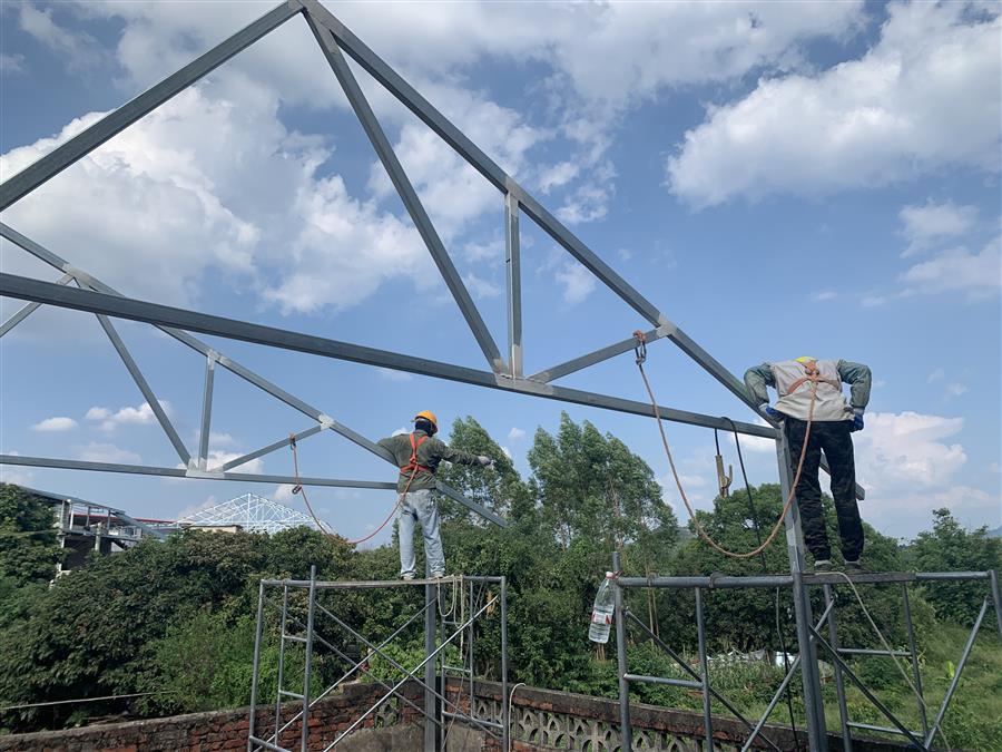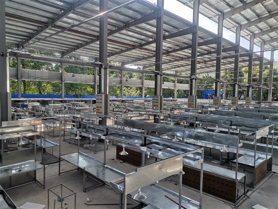9月21日,在第十分公司承建的柳州市桂中商城改造過渡市場項目施工現(xiàn)場,100多名施工人員堅守崗位,趕工期,搶進度。目前,該項目道路已全部硬化,鋼結(jié)構(gòu)安裝工程完成90%,門窗安裝完成60%,水電安裝完成90%。