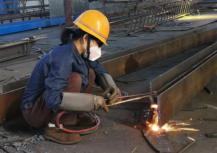 在壓力容器制造廠金屬結(jié)構(gòu)車間里,工人在揮灑汗水,奮戰(zhàn)在崗位上,他們立足崗位,與任務(wù)節(jié)點賽跑,確保按時完成鋼蓖子制作工作。