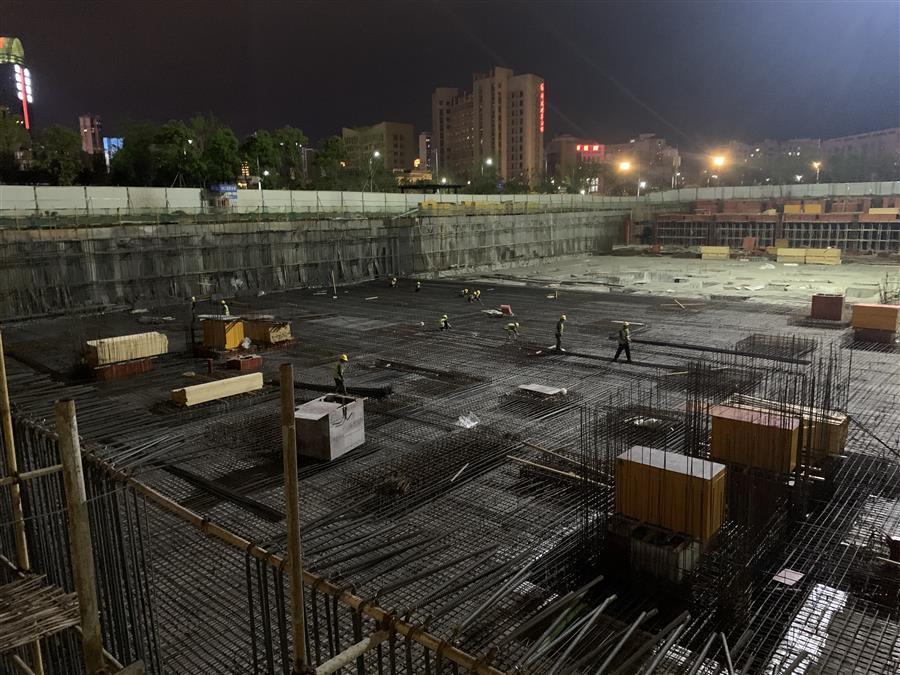 時至深夜,贛州市人民醫(yī)院新院職工交流房項(xiàng)目工作人員依舊奮戰(zhàn)在施工現(xiàn)場,現(xiàn)場機(jī)械轟鳴聲、焊接切割聲交織在一起,一片熱火朝天的大干景象。目前,130余名施工作業(yè)人員全面鋪開各個工作面,底板防水施工、承臺鋼筋綁扎、磚胎膜砌筑、樁頭破除、地下室頂板架子搭設(shè)和模板安裝等工作都在有序推進(jìn),各班組都在按照計(jì)劃加班加點(diǎn)推進(jìn)項(xiàng)目建設(shè)進(jìn)度。