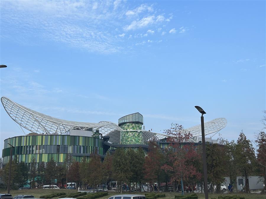 據悉,該項目位于江蘇省東臺市黃海森林公園內,由東區(qū)、西區(qū)及戶外休息區(qū)三部分組成,總建筑面積約1.8萬平方米,建筑高度22.77米,最大單跨跨度為45米。