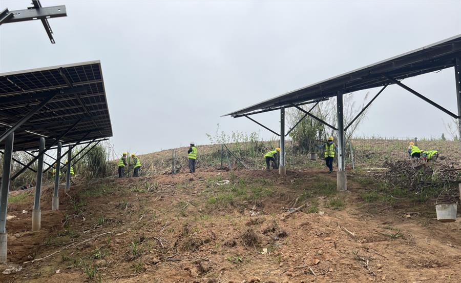 節(jié)后復(fù)工復(fù)產(chǎn)以來(lái),項(xiàng)目接地網(wǎng)開挖敷設(shè)完成1235米,低壓電纜敷設(shè)完成1285米,光伏專用電纜敷設(shè)完成14760米,圍欄安裝1030米。
