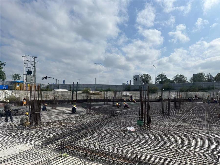 目前,項目塔1區(qū)域完成地下室頂板澆筑;塔2區(qū)域完成防水板鋼筋綁扎;塔3區(qū)域防水板鋼筋完成30%;塔1剩余區(qū)域完成基礎頂-防水板短柱澆筑;其他中庭區(qū)域完成98.77米大開挖。
