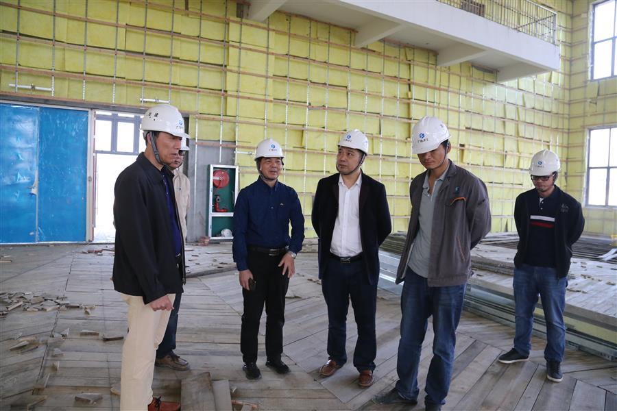 設(shè)備安裝分公司領(lǐng)導(dǎo)班子深入工地現(xiàn)場(chǎng),認(rèn)真聽(tīng)取了相關(guān)負(fù)責(zé)人介紹工地的基本情況,詳細(xì)詢問(wèn)了施工布局、施工工序、施工進(jìn)度情況,檢查吸音棉、運(yùn)動(dòng)木地板等材料質(zhì)量,詳細(xì)了解了項(xiàng)目建設(shè)的計(jì)劃安排、組織實(shí)施情況及現(xiàn)階段建設(shè)過(guò)程中實(shí)際存在的問(wèn)題和困難。