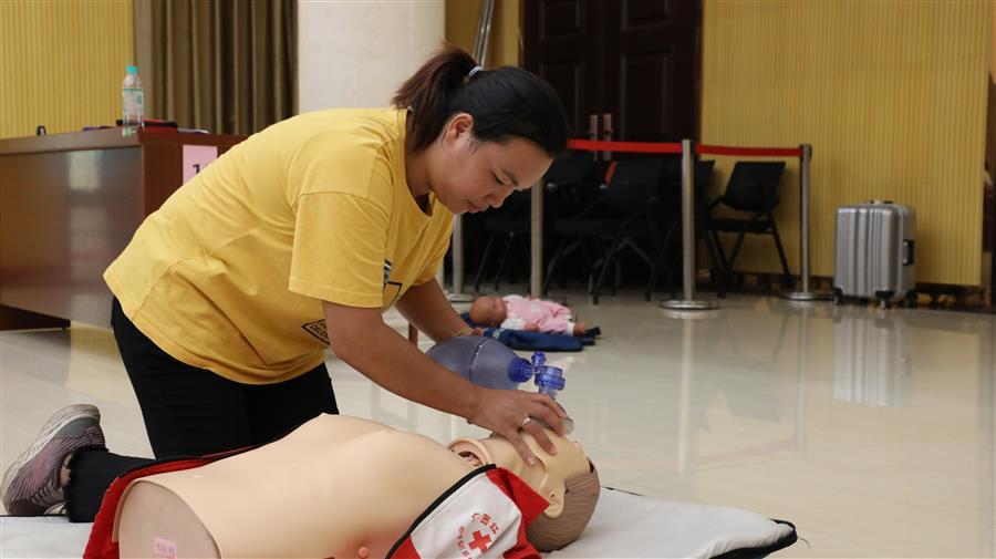 培訓重點教授了意外傷害及突發(fā)事件應(yīng)急救護措施、常見急癥、心肺復(fù)蘇、氣道異物梗阻急救、創(chuàng)傷救護、緊急包扎、骨折固定、特殊傷現(xiàn)場處理等內(nèi)容。實操練習中,老師們在現(xiàn)場與學員進行互動,讓學員進行救護示范并進行一對一指導,確保學員學懂,學會,學好急救手法以及救護步驟。