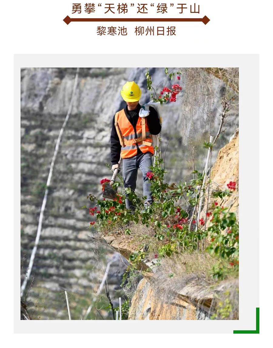 近日,“神奇神木杯”第31屆人民攝影“金鏡頭”(2021年度)新聞攝影作品評(píng)選在陜西省神木市揭曉。柳州日?qǐng)?bào)社記者黎寒池拍攝的冶建公司桂華分公司承建的柳州市樓梯山采石場(chǎng)山體復(fù)綠工程項(xiàng)目作品——《勇攀“天梯”還“綠”于山》獲自然環(huán)境新聞?lì)惤M照金獎(jiǎng),此獎(jiǎng)是時(shí)隔20年后,廣西攝影師再次在該賽事中獲獎(jiǎng),并斬獲廣西首個(gè)金獎(jiǎng)。