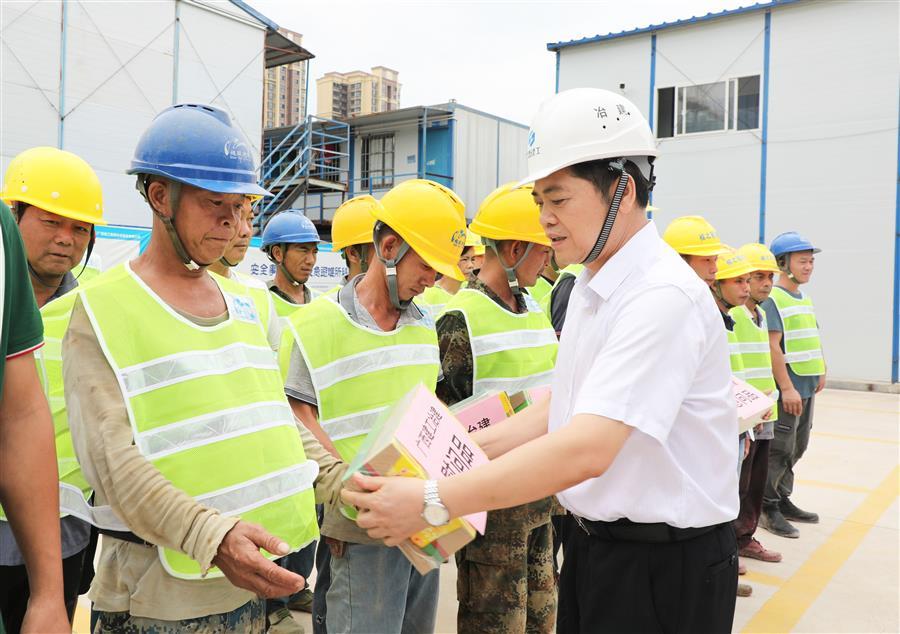 慰問中,蒙勝益向高溫中堅(jiān)守在項(xiàng)目一線的建設(shè)者們表示感謝,并詳細(xì)了解了分公司、項(xiàng)目部防暑降溫措施落實(shí)情況。他表示,當(dāng)前天氣酷熱難耐,在施工過程中要做好防暑降溫,身體感到不適應(yīng)時要及時休息。分公司、項(xiàng)目部要認(rèn)真做好高溫天氣施工方案,根據(jù)天氣情況制定施工計(jì)劃,避開高溫時段作業(yè),同時要抓好工人的安全教育工作,備足防暑降溫物資,做好安全管理和后勤保障工作,保障工人身體健康,確保項(xiàng)目安全有序推進(jìn)。