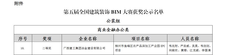 近日,冶建公司基礎(chǔ)分公司技術(shù)成果——柳州市魚(yú)峰區(qū)農(nóng)產(chǎn)品深加工產(chǎn)業(yè)園“基于BIM技術(shù)在施工過(guò)程中的精細(xì)化管理”,獲得2項(xiàng)國(guó)家級(jí)獎(jiǎng)。該技術(shù)成果分別在中國(guó)建筑業(yè)協(xié)會(huì)主辦的第八屆建設(shè)工程BIM大賽中獲得三類成果獎(jiǎng)和中國(guó)建筑裝飾協(xié)會(huì)工業(yè)和信息化分會(huì)主辦的第五屆全國(guó)建筑裝飾BIM大賽中獲得公裝組二等獎(jiǎng)。