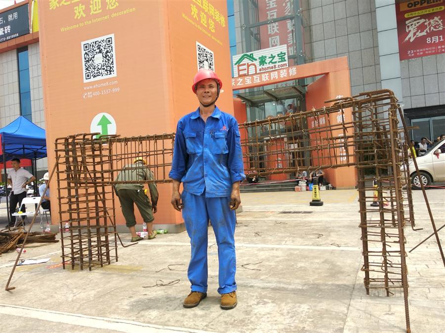8月31日,在柳州家居建材博覽中心室外廣場上,一群頭戴安全,身著工裝的農(nóng)民工在各自忙碌著,不時傳來“叮叮?!变摻钆鲎猜?、“嘩嘩嘩”刨木聲、“咚咚咚”敲磚聲……伴隨著一片熱鬧的聲響,柳州市第四屆農(nóng)民工技能大賽暨柳州市第三屆農(nóng)民工家庭服務業(yè)大賽火熱舉行。
