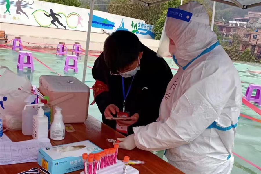 2月7日,阮斌在百色市田東縣印茶鎮(zhèn)那板村六內(nèi)屯青年志愿者隊參加志愿者工作。他每天除了協(xié)助醫(yī)務人員進行核酸檢測,還要與其他志愿者在村口站崗,仔細檢查每一位村民的兩碼并測量體溫。遇到不配合工作的老人,他還會耐心解釋當前疫情防控政策,勸說他們不要離鄉(xiāng)走動,配合防疫工作人員做好疫情防控工作。不站崗時,阮斌會和其他青年志愿者一起上門宣傳疫情防護知識,幫助村民做核酸檢測前的信息錄入。有些老人不會使用手機,阮斌便耐心將操作流程演示給老人看,再讓老人自行操作一次,遇到老人忘記操作的步驟時,阮斌會一次又一次地演示,直到老人可以記住全部操作流程。