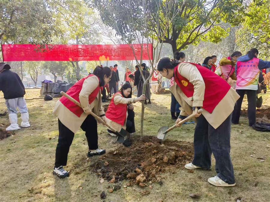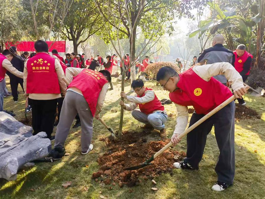 活動(dòng)現(xiàn)場(chǎng),團(tuán)員青年們分工協(xié)作、干勁十足,揮鍬鏟土、扶苗填坑,合力種下數(shù)十株紫花風(fēng)鈴木。新栽的樹苗迎風(fēng)挺立,為春日動(dòng)物園增添了幾分生機(jī)。
